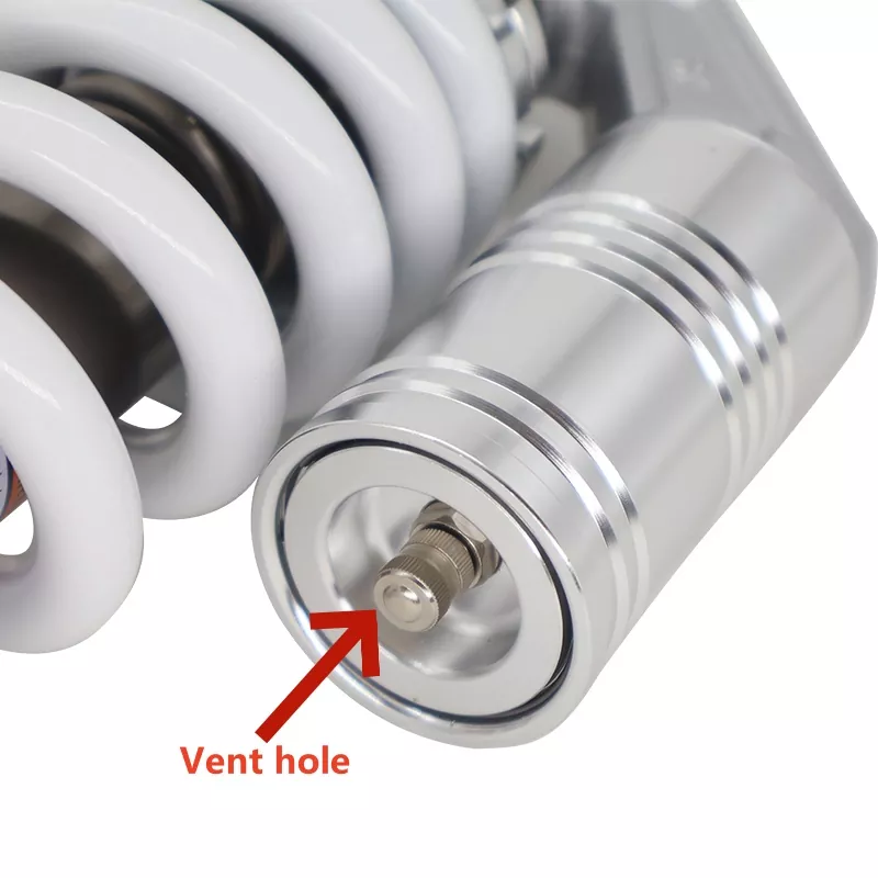 Dış hava yastığı 280mm motosiklet amortisörü, uzun sürüş dönemlerinde yağda gaz oluşumunu kontrol etmek için bir egzoz valfi içerir ve optimum sönüm performansını sağlar. Şok emicisinde yetersiz gaz varsa, tutarlı fonksiyon ve sürüş kalitesini korumak için 0.7-0.8MPa hava ile doldurulabilir.